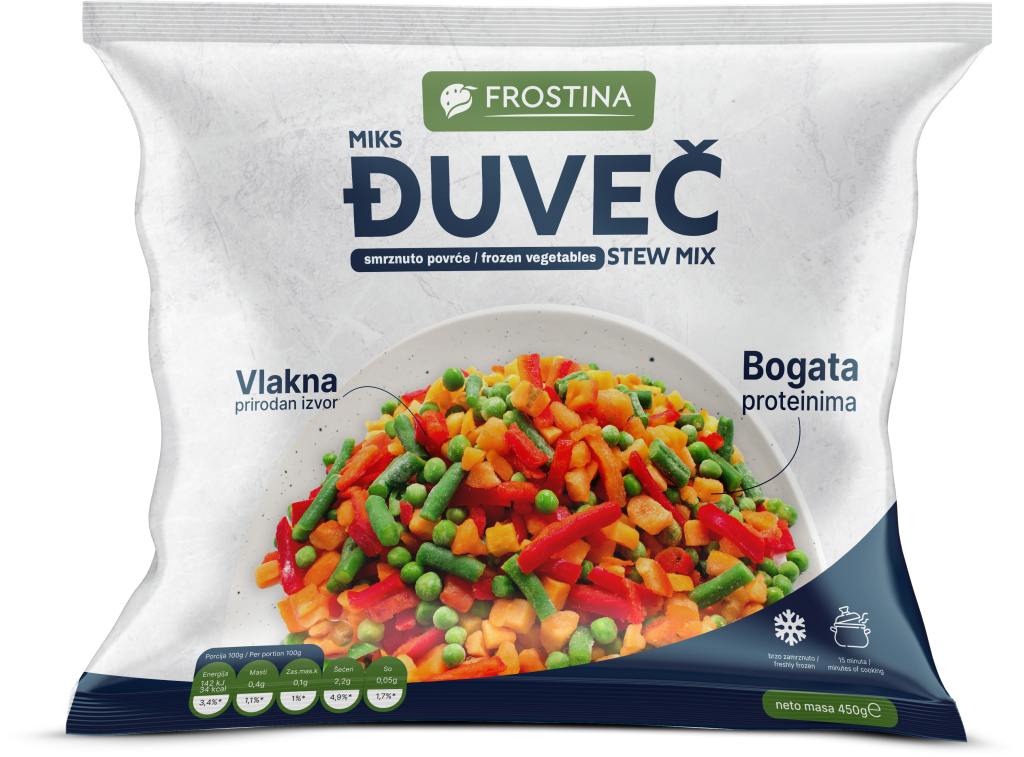 Frostina nudi visokokvalitetno smrznuto voće i povrće, pažljivo odabrano i obrađeno kako bi sačuvalo sve nutritivne vrednosti i svežinu.
